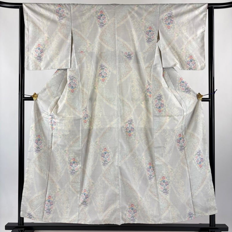 【大島紬】 灰色系 灰白 逸品 A 約150cm~約159cm 裄丈63cm-64cm (S)size 袖丈49cm 30000- 美品 五万以上
