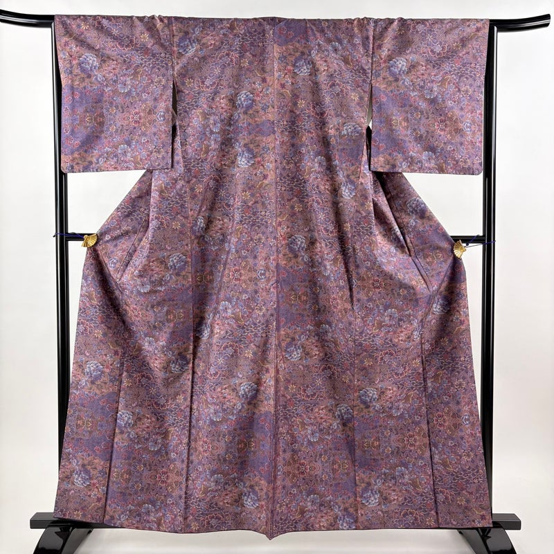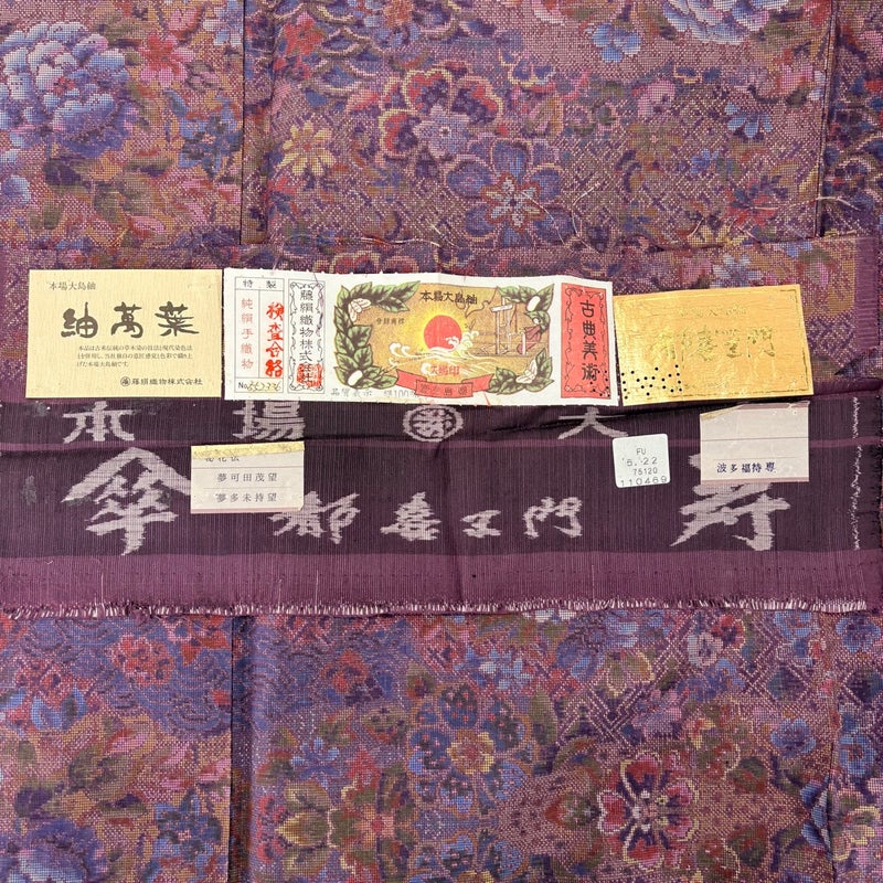 【大島紬】 紫系 紫 逸品 A 約160cm~約169cm 裄丈66cm (M)size 袖丈49cm 30000- 美品 五万以上