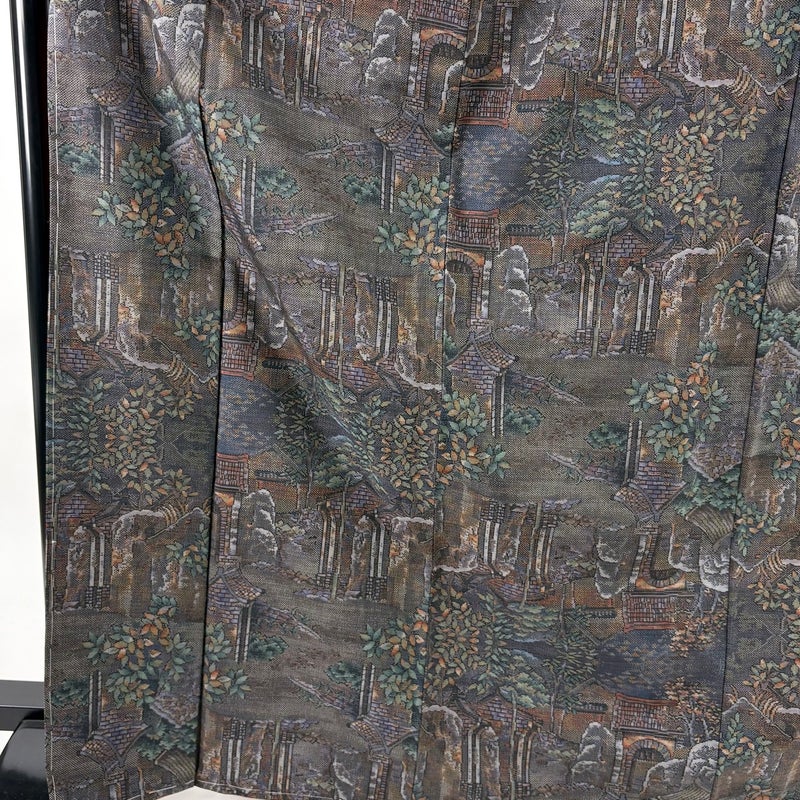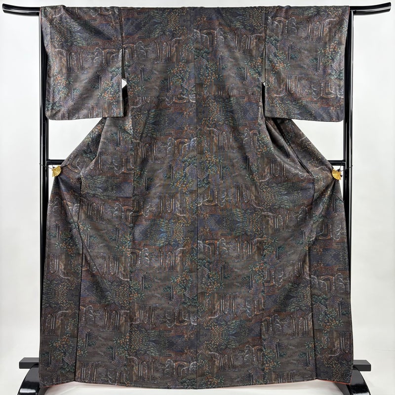 【着物ランク】逸品 【素材】正絹 【身丈】約171cm 【裄丈】約66cm 【袖丈】約50.5cm 【袖幅】約33.5cm 【前幅】約22cm 【後幅】約29cm 【サイズ】M 【着物仕立て】袷 【着用時期】10~5月 【状態ランク】ランクA 【作家名】都喜ヱ門 【着物着用シーン】気軽なパーティー、観劇、食事会、正月、気軽なお茶会、街着