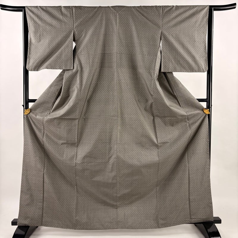 【大島紬】 灰色系 灰緑 秀品 A 約160cm~約169cm 裄丈63cm-64cm (M)size 袖丈48cm 7990-9980 美品 二万以下