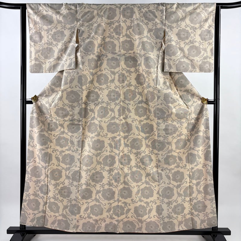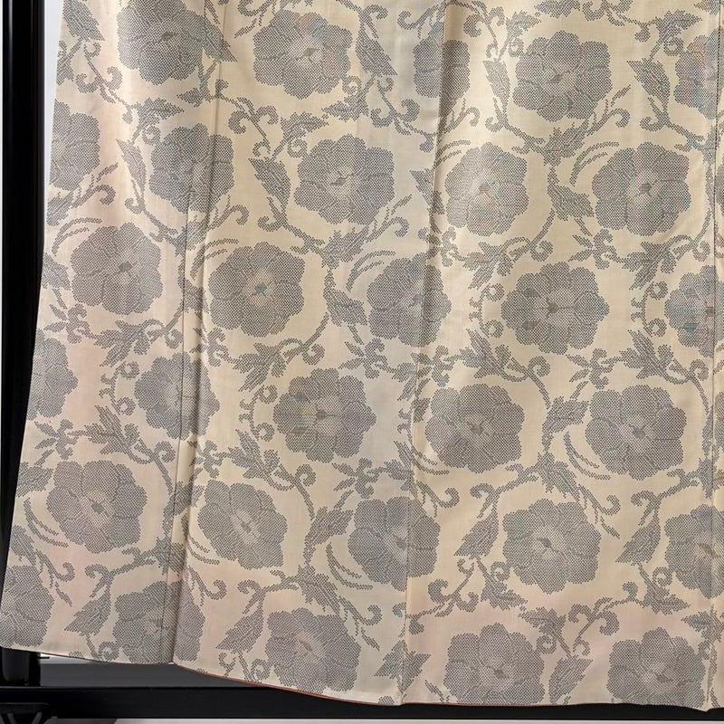 【着物ランク】秀品 【素材】正絹 【身丈】約159cm 【裄丈】約63.5cm 【袖丈】約49cm 【袖幅】約32.5cm 【前幅】約24cm 【後幅】約29cm 【サイズ】S 【着物仕立て】袷 【着用時期】10~5月 【状態ランク】ランクA 【着物着用シーン】気軽なパーティー、観劇、食事会、正月、気軽なお茶会、街着
