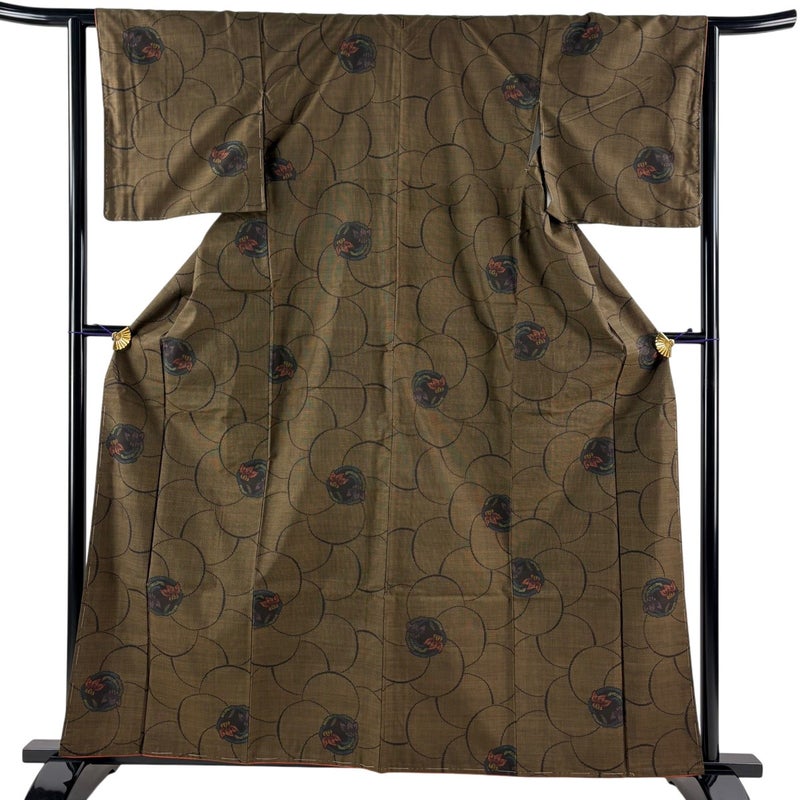 【着物ランク】名品 【素材】正絹 【身丈】約160.5cm 【裄丈】約63.5cm 【袖丈】約47cm 【袖幅】約33cm 【前幅】約22.5cm 【後幅】約28cm 【サイズ】S 【着物仕立て】袷 【着用時期】10~5月 【状態ランク】ランクA 【着物着用シーン】気軽なパーティー、観劇、食事会、正月、気軽なお茶会、街着
