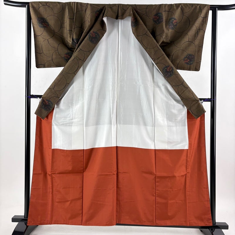 【大島紬】 茶系 茶色 名品 A 約160cm~約169cm 裄丈63cm-64cm (S)size 袖丈47cm 9990-29990 美品 二万以下