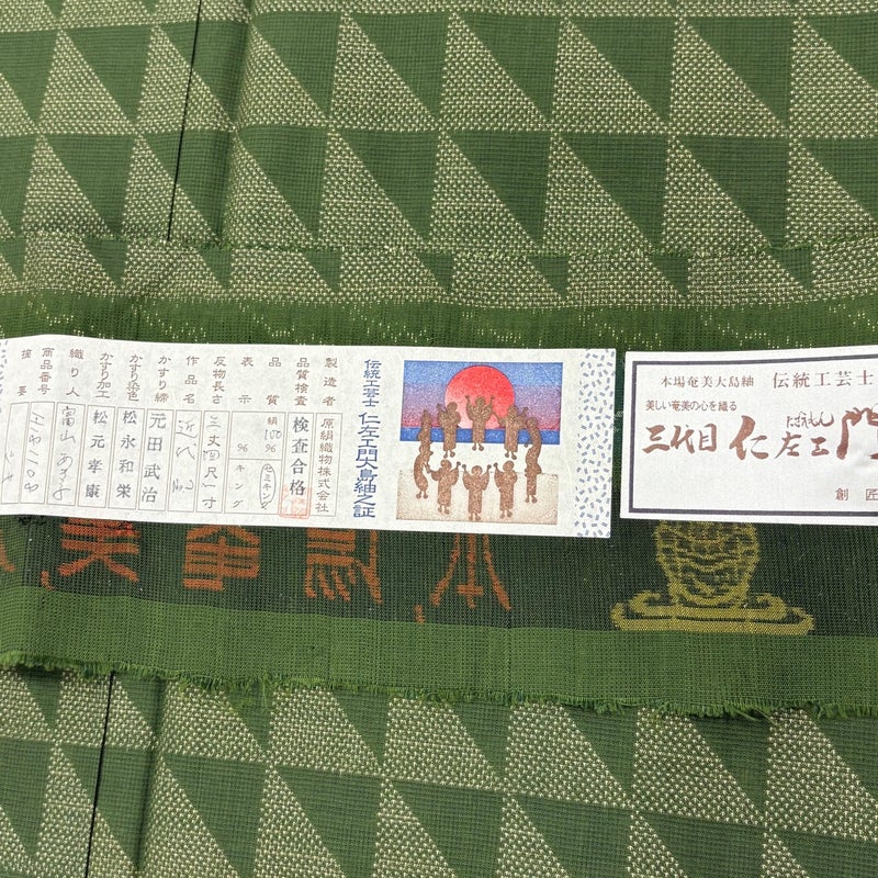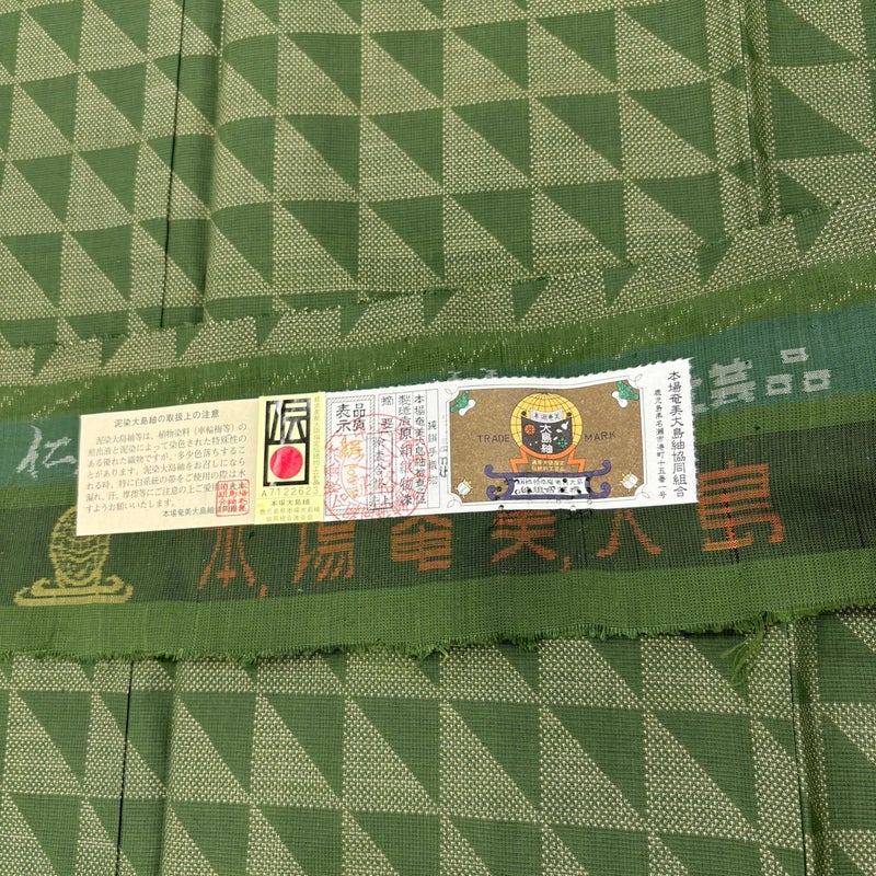 【大島紬】 緑系 緑 名品 B 約150cm~約159cm 裄丈62cm以下 (S)size 袖丈46cm以下 9990-29990 二万以下