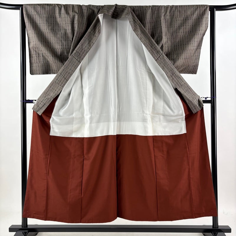 極上の着心地を誘い、洒落度溢れる絹音がお洒落心を満たす大島紬でございます。 紬特有の絹なりが感じられる一品となっております。 身丈を+5.0cm程、現在の長さから伸ばせます。 裄丈を+7.0cm程、現在の長さから伸ばせます。 リユース品としては目立った染み傷なく、状態の良いお品でございます。 ※なお、厳しく商品の状態確認を行っておりますが、記載の汚れ以外にも見落とし箇所がある可能性がある旨ご了承いただけますと幸いです。 沢山の商品の中からご覧いただき誠にありがとうございます。