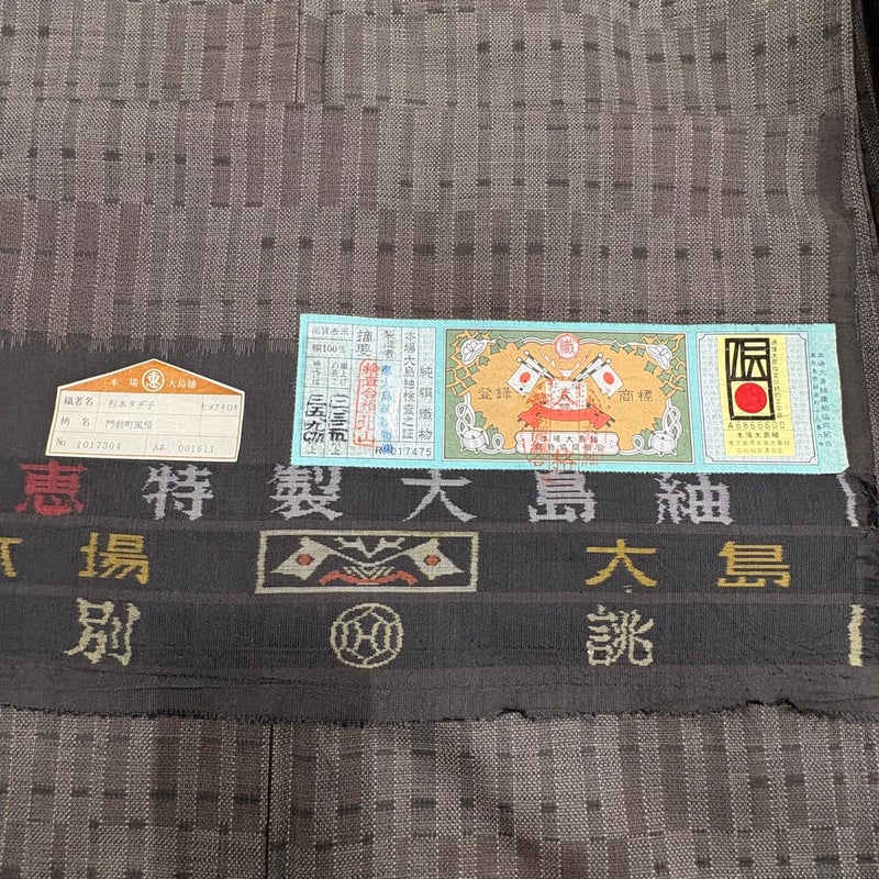 【大島紬】 茶系 焦茶色 逸品 A 約150cm~約159cm 裄丈63cm-64cm (S)size 袖丈49cm 30000- 美品 五万以下