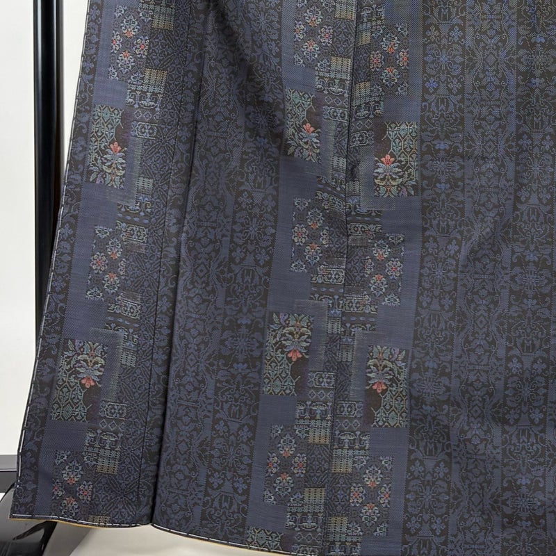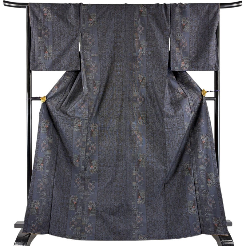 【着物ランク】秀品 【素材】正絹 【身丈】約168.5cm 【裄丈】約68cm 【袖丈】約49.5cm 【袖幅】約34.5cm 【前幅】約25cm 【後幅】約30cm 【サイズ】L 【着物仕立て】袷 【着用時期】10~5月 【状態ランク】ランクA 【着物着用シーン】気軽なパーティー、観劇、食事会、正月、気軽なお茶会、街着