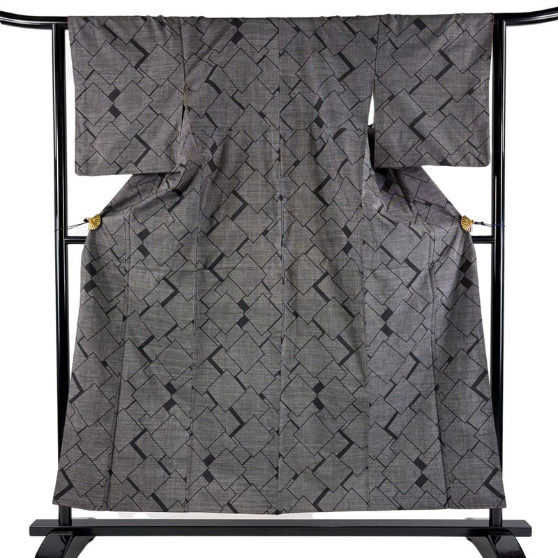 【大島紬】 灰色系 黒灰 秀品 A 約150cm~約159cm 裄丈63cm-64cm (S)size 袖丈49cm 7990-9980 美品 二万以下