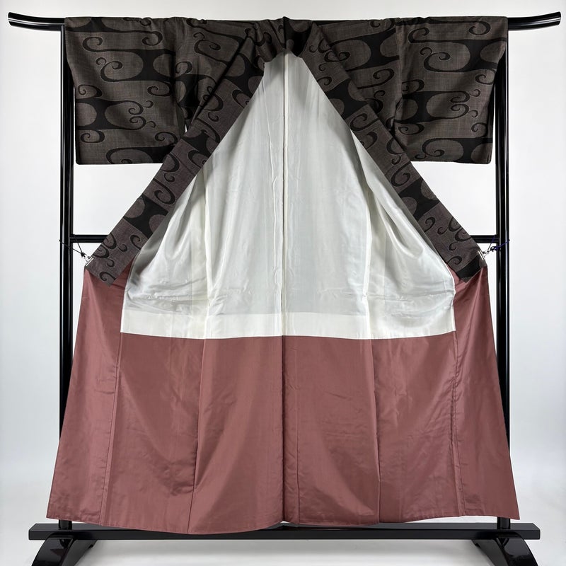 【大島紬】 茶系 焦茶色 秀品 B 約150cm~約159cm 裄丈67cm-68cm (M)size 袖丈46cm以下 4000-7980 二万以下