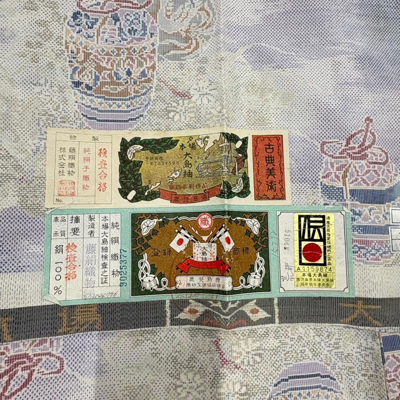 極上の着心地を誘い、洒落度溢れる絹音がお洒落心を満たす大島紬でございます。 紬特有の絹なりが感じられる一品となっております。 身丈はこれ以上伸ばすことができません。 裄丈を+2.5cm程、現在の長さから伸ばせます。 衿周りや両袖口中に薄汚れがございます。 裏地所々に薄いシミ、衿裏にホックシミ、裏地に黄変がございます。 リユース品としては目立った染み傷なく、状態の良いお品でございます。 ※なお、厳しく商品の状態確認を行っておりますが、記載の汚れ以外にも見落とし箇所がある可能性がある旨ご了承いただけますと幸いです。 沢山の商品の中からご覧いただき誠にありがとうございます。
