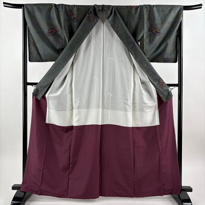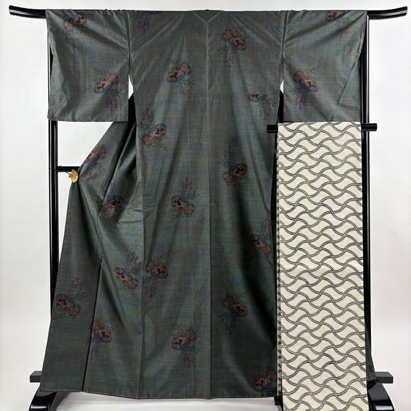 【着物ランク】名品 【素材】正絹 【身丈】約166cm 【裄丈】約66.5cm 【袖丈】約49.5cm 【袖幅】約33cm 【前幅】約24.5cm 【後幅】約30cm 【サイズ】M 【着物仕立て】袷 【着用時期】10~5月 【帯丈2】約444cm 【帯幅2】約30.5cm 【状態ランク】ランクA 【着物着用シーン】気軽なパーティー、観劇、食事会、正月、気軽なお茶会、街着