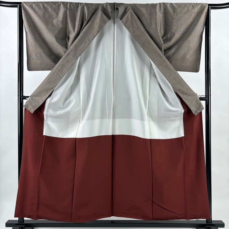 【着物ランク】名品 【素材】正絹 【身丈】約157.5cm 【裄丈】約65cm 【袖丈】約49cm 【袖幅】約33cm 【前幅】約25cm 【後幅】約30.5cm 【サイズ】M 【着物仕立て】袷 【着用時期】10~5月 【状態ランク】ランクB 【着物着用シーン】気軽なパーティー、観劇、食事会、正月、気軽なお茶会、街着