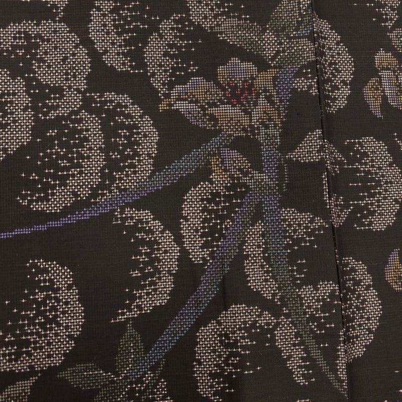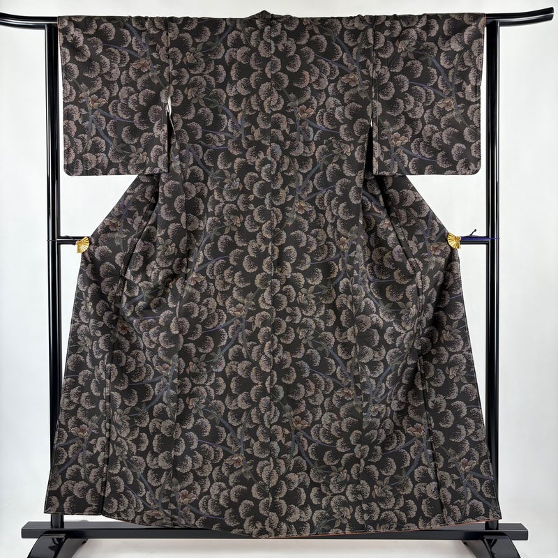 【着物ランク】名品 【素材】正絹 【身丈】約159cm 【裄丈】約63.5cm 【袖丈】約49cm 【袖幅】約32cm 【前幅】約24cm 【後幅】約29cm 【サイズ】S 【着物仕立て】袷 【着用時期】10~5月 【状態ランク】ランクA 【着物着用シーン】気軽なパーティー、観劇、食事会、正月、気軽なお茶会、街着