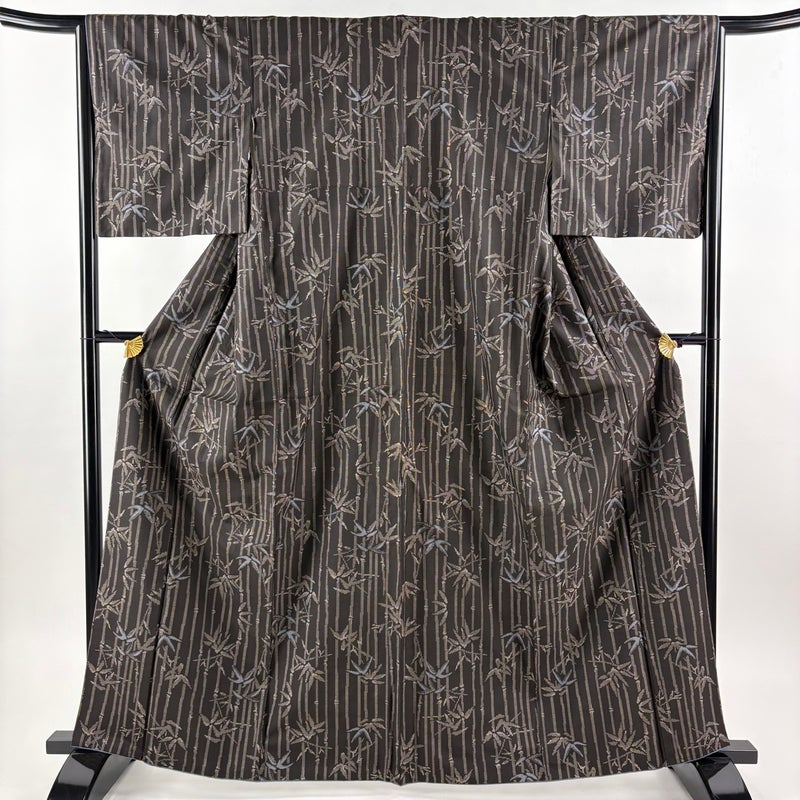 【大島紬】 茶系 焦茶色 秀品 C 約160cm~約169cm 裄丈65cm (M)size 袖丈47cm 4000-7980 二万以下