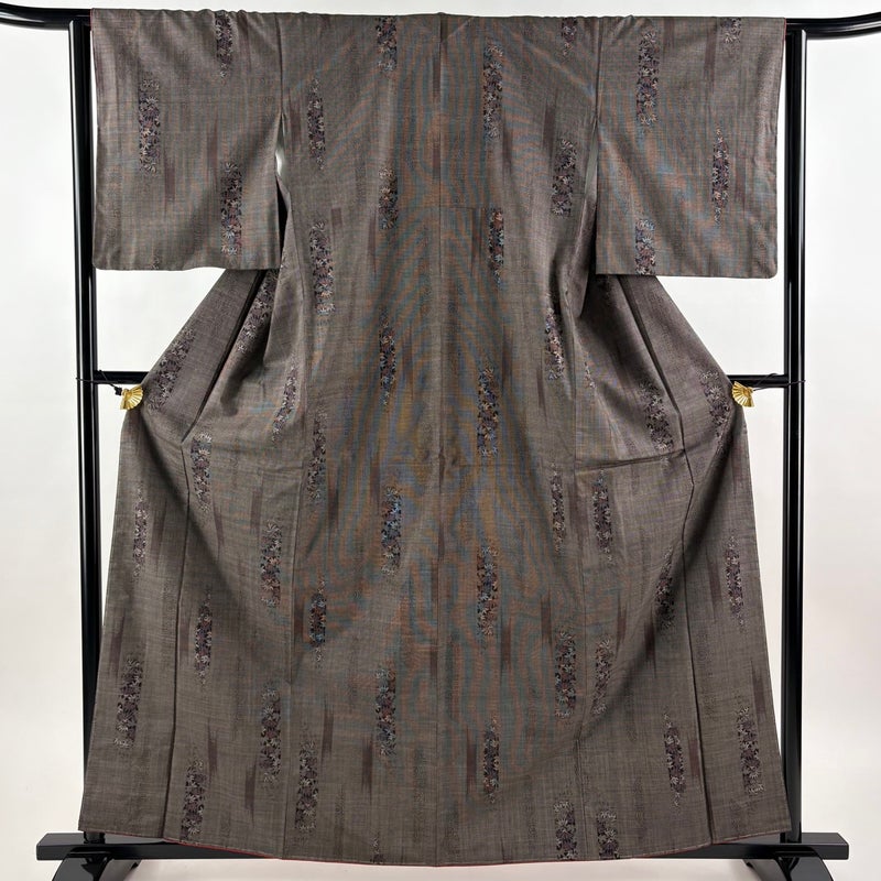 【大島紬】 茶系 焦茶色 秀品 A 約160cm~約169cm 裄丈63cm-64cm (S)size 袖丈49cm 7990-9980 美品 二万以下