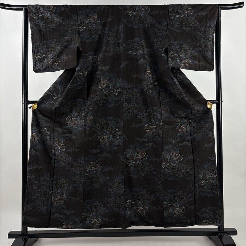 【大島紬】 黒系 墨色 秀品 A 約150cm~約159cm 裄丈63cm-64cm (M)size 袖丈48cm 7990-9980 美品 二万以下