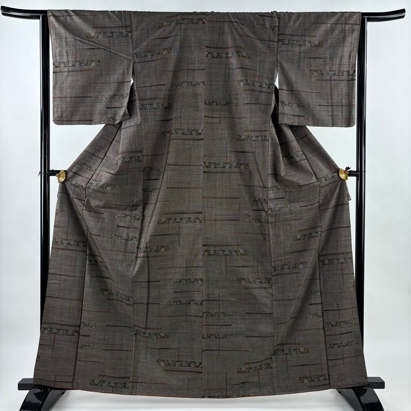 【大島紬】 茶系 焦茶色 秀品 A 約160cm~約169cm 裄丈63cm-64cm (M)size 袖丈49cm 7990-9980 美品 二万以下