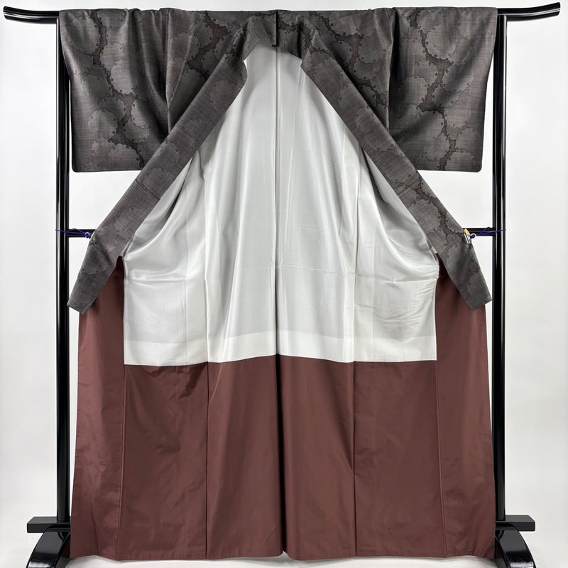 【大島紬】 灰色系 灰茶 名品 C 約160cm~約169cm 裄丈66cm (M)size 袖丈49cm 9990-29990 二万以下