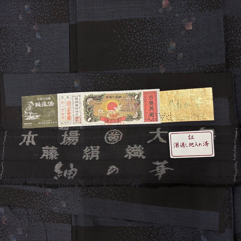 極上の着心地を誘い、洒落度溢れる絹音がお洒落心を満たす大島紬でございます。 紬特有の絹なりが感じられる一品となっております。 ※身丈・裄丈の縫込みの長さは測っておりません。 衿周りに汚れ、右袖前後と右胸にシワがございます。 八掛にヤケがございます。 リユース品としては良い状態で、まだまだご活用頂けると思われます。 ※なお、厳しく商品の状態確認を行っておりますが、記載の汚れ以外にも見落とし箇所がある可能性がある旨ご了承いただけますと幸いです。 沢山の商品の中からご覧いただき誠にありがとうございます。
