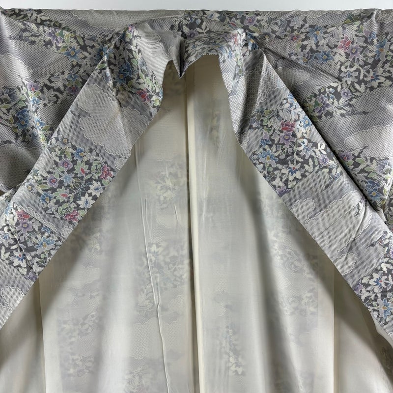【大島紬】 灰色系 灰色 逸品 C 約150cm~約159cm 裄丈63cm-64cm (M)size 袖丈48cm 30000- 五万以上