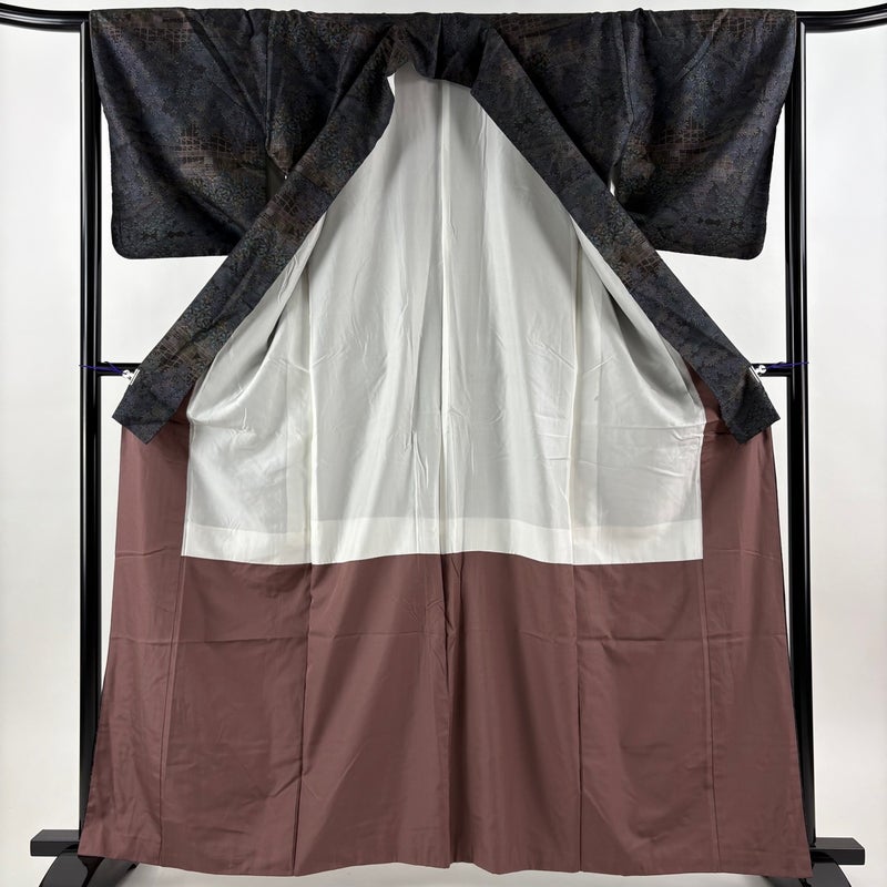 【着物ランク】秀品 【素材】正絹 【身丈】約164cm 【裄丈】約65cm 【袖丈】約46.5cm 【袖幅】約33.5cm 【前幅】約24.5cm 【後幅】約30cm 【サイズ】M 【着物仕立て】袷 【着用時期】10~5月 【状態ランク】ランクC 【着物着用シーン】気軽なパーティー、観劇、食事会、正月、気軽なお茶会、街着
