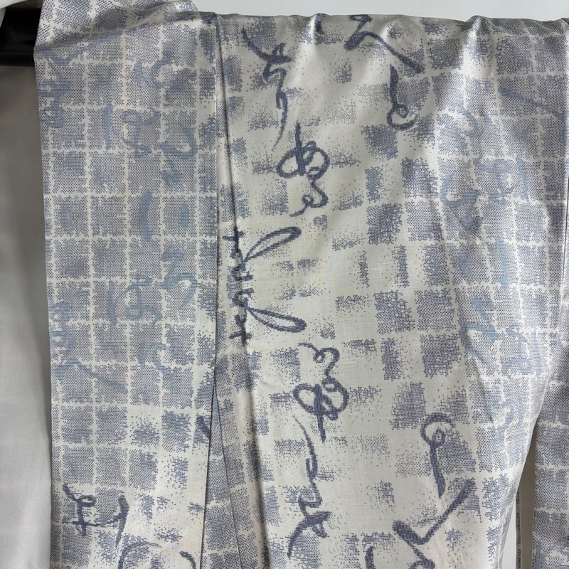 【大島紬】 灰色系 灰白 逸品 B 約160cm~約169cm 裄丈66cm (M)size 袖丈49cm 30000- 五万以上
