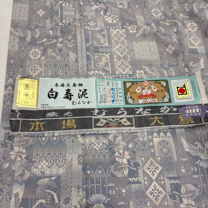 【大島紬】 灰色系 灰紫 名品 B 約150cm~約159cm 裄丈63cm-64cm (M)size 袖丈50cm-60cm 9990-29990 二万以下