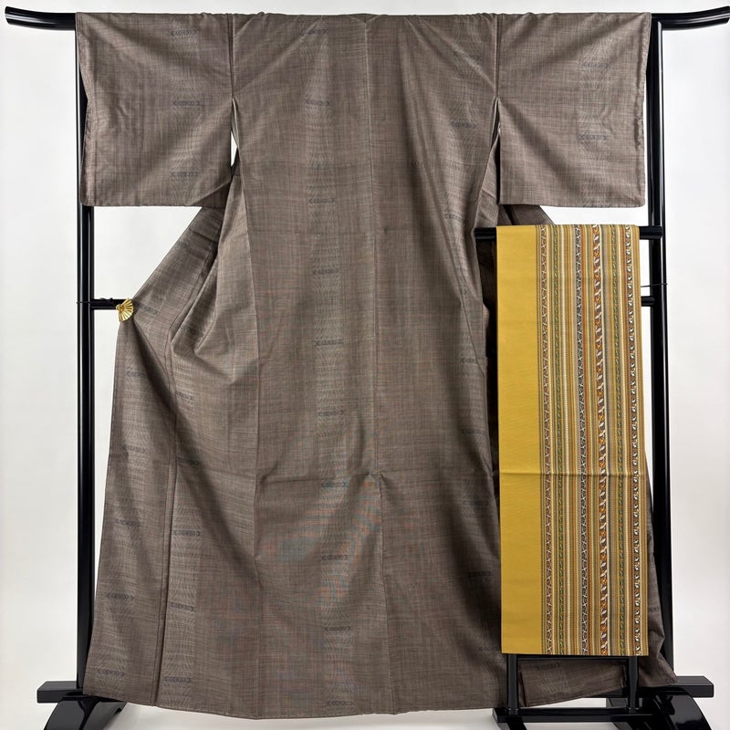 【大島紬】 茶系 茶色 名品 A 約160cm~約169cm 裄丈66cm (M)size 袖丈46cm以下 30000- 美品 五万以下