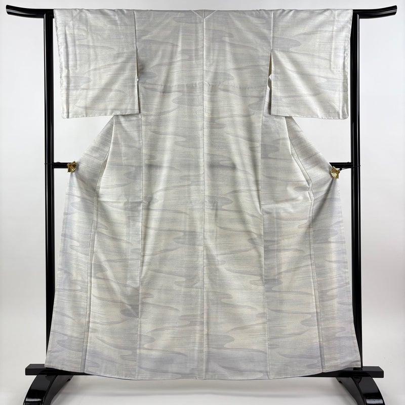 【大島紬】 灰色系 灰白 秀品 A 約160cm~約169cm 裄丈63cm-64cm (S)size 袖丈49cm 9990-29990 美品 五万以下
