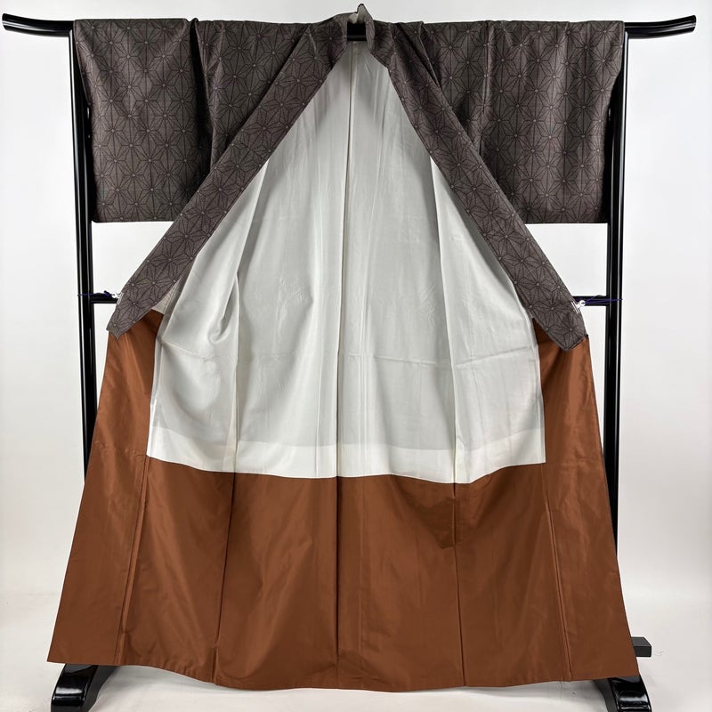 【着物ランク】秀品 【素材】正絹 【身丈】約167.5cm 【裄丈】約68.5cm 【袖丈】約49.5cm 【袖幅】約34.5cm 【前幅】約26.5cm 【後幅】約32.5cm 【サイズ】L 【着物仕立て】袷 【着用時期】10~5月 【状態ランク】ランクA 【着物着用シーン】気軽なパーティー、観劇、食事会、正月、気軽なお茶会、街着