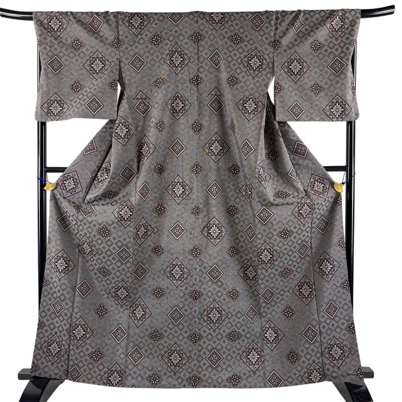 【着物ランク】逸品 【素材】正絹 【身丈】約163.5cm 【裄丈】約69cm 【袖丈】約49cm 【袖幅】約35cm 【前幅】約24cm 【後幅】約30cm 【サイズ】L 【着物仕立て】袷 【着用時期】10~5月 【状態ランク】ランクA 【着物着用シーン】気軽なパーティー、観劇、食事会、正月、気軽なお茶会、街着