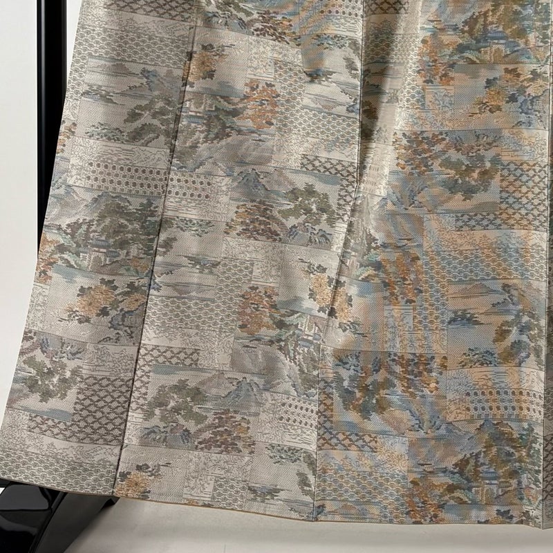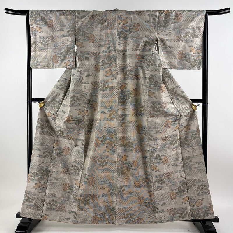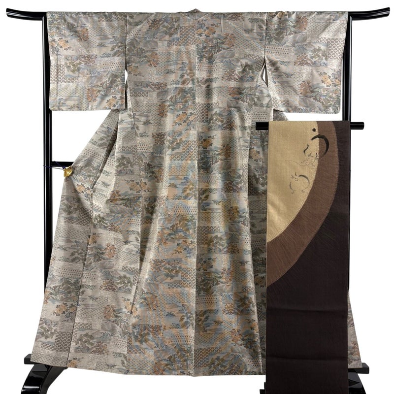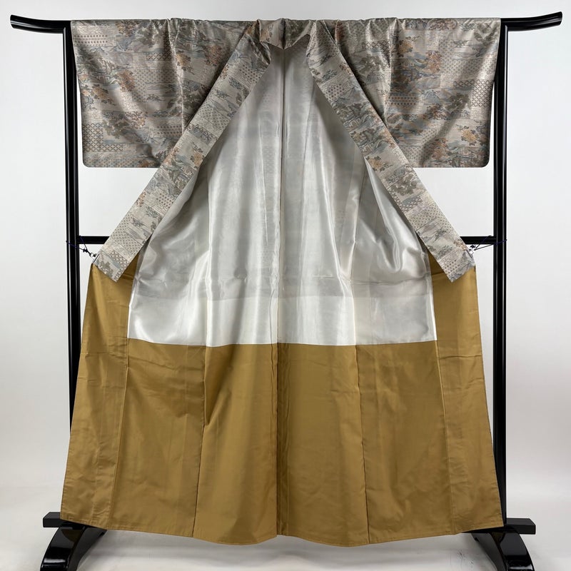 【着物ランク】名品 【素材】正絹 【身丈】約162cm 【裄丈】約65cm 【袖丈】約45cm 【袖幅】約33.5cm 【前幅】約26cm 【後幅】約30cm 【サイズ】M 【着物仕立て】袷 【着用時期】10~5月 【帯丈2】約456cm 【帯幅2】約31cm 【状態ランク】ランクA 【着物着用シーン】気軽なパーティー、観劇、食事会、正月、気軽なお茶会、街着