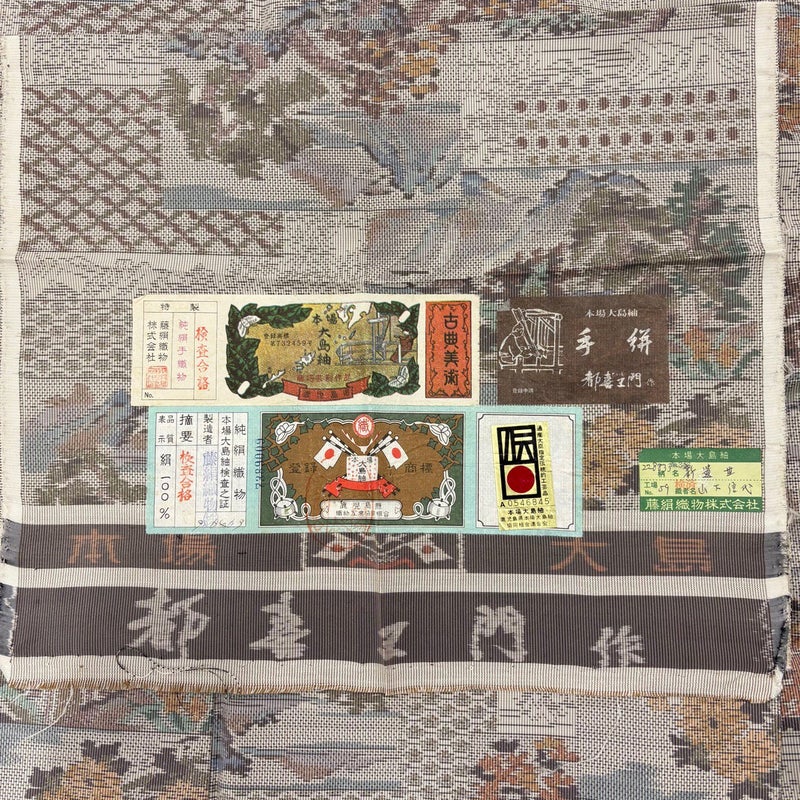 【大島紬】 白系 ベージュ 名品 A 約160cm~約169cm 裄丈65cm (M)size 袖丈46cm以下 30000- 美品 五万以下
