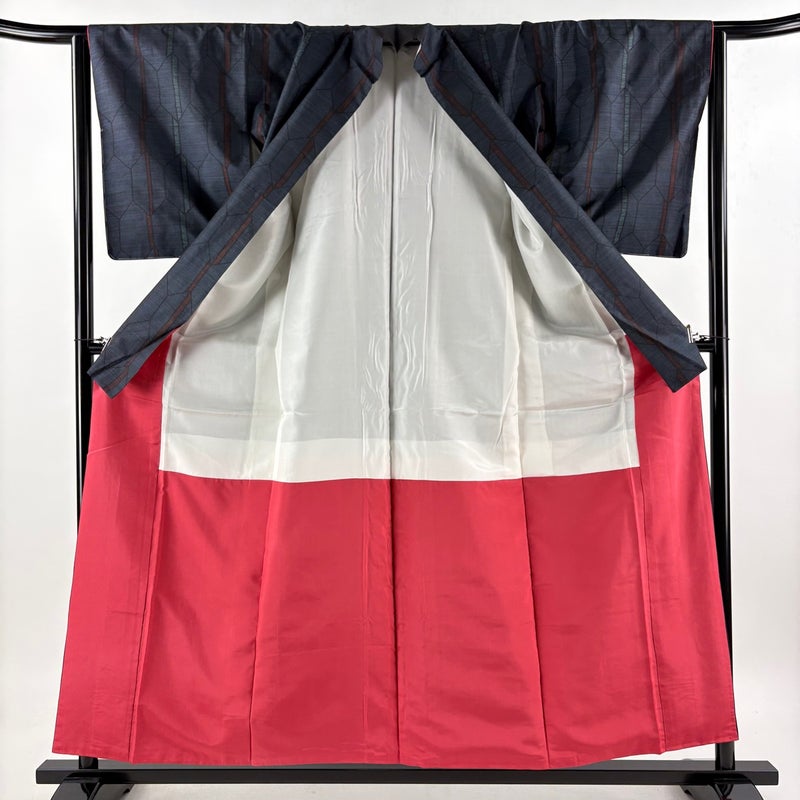 【着物ランク】優品 【素材】正絹 【身丈】約157cm 【裄丈】約64.5cm 【袖丈】約48.5cm 【袖幅】約32.5cm 【前幅】約24.5cm 【後幅】約30.5cm 【サイズ】M 【着物仕立て】袷 【着用時期】10~5月 【状態ランク】ランクB 【着物着用シーン】気軽なパーティー、観劇、食事会、正月、気軽なお茶会、街着