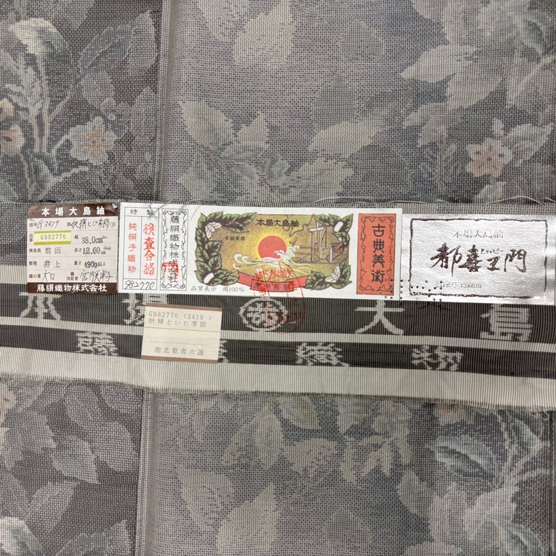 【大島紬】 灰色系 灰色 逸品 A 約160cm~約169cm 裄丈65cm (M)size 袖丈48cm 30000- 美品 五万以上