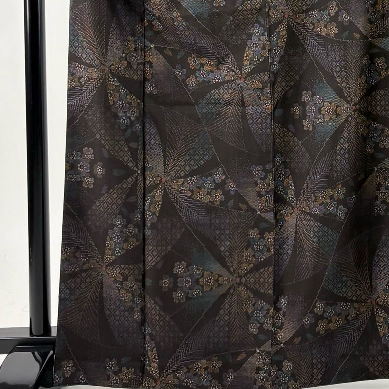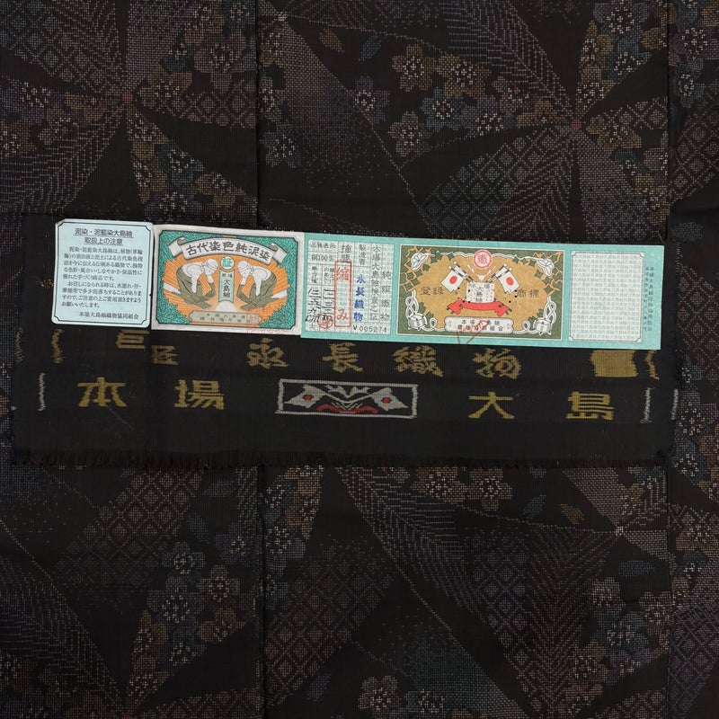 【大島紬】 黒系 墨色 名品 B 約160cm~約169cm 裄丈67cm-68cm (L)size 袖丈50cm-60cm 9990-29990 二万以下