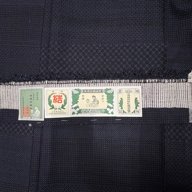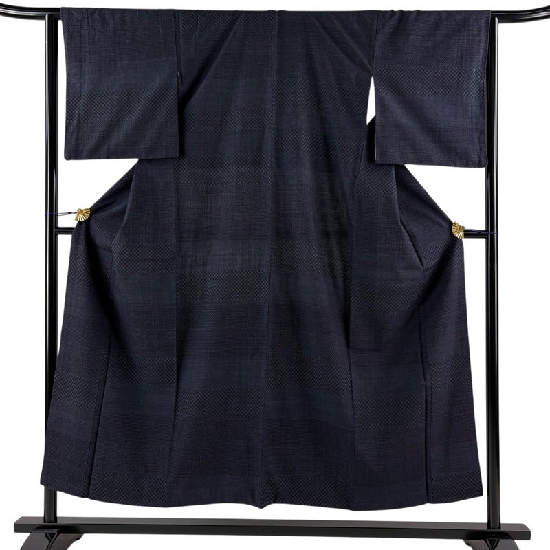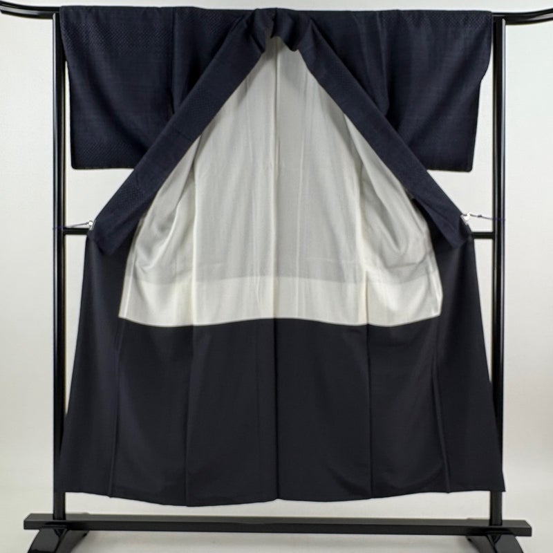 【結城紬】 青系 濃紺 逸品 A 約150cm~約159cm 裄丈63cm-64cm (M)size 袖丈49cm 30000- 美品 五万以上