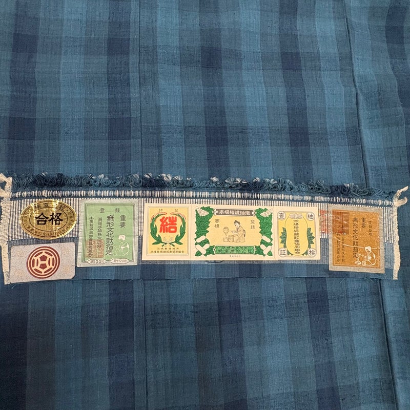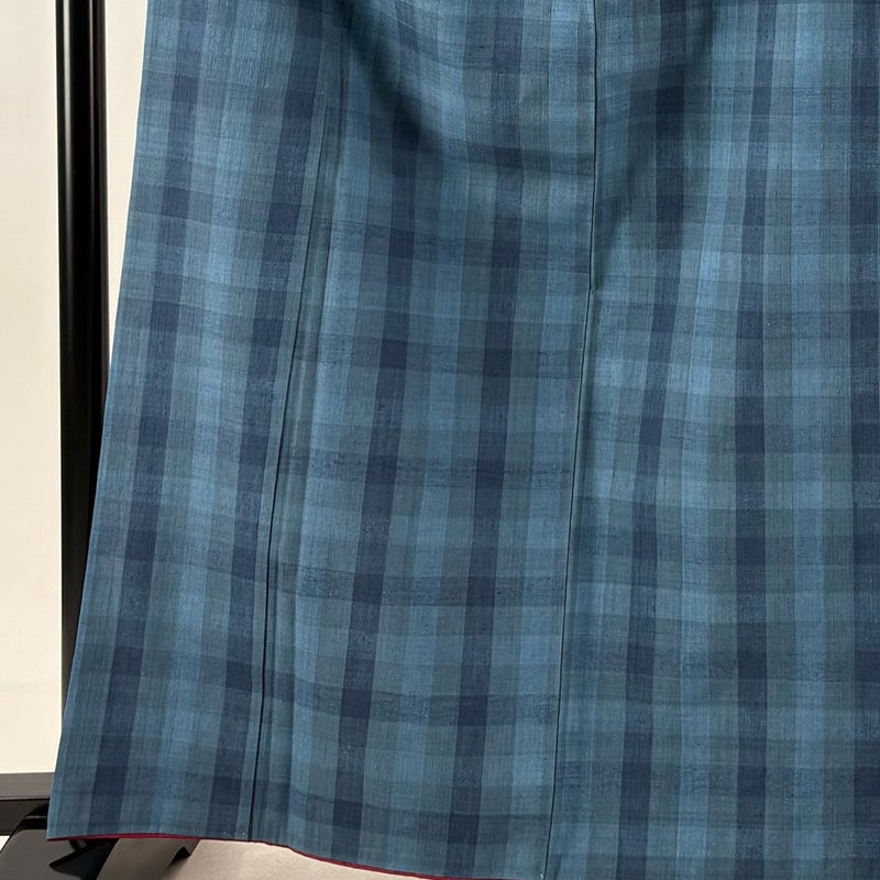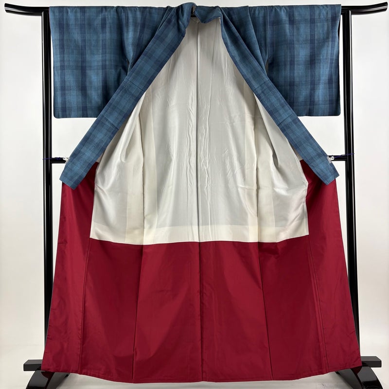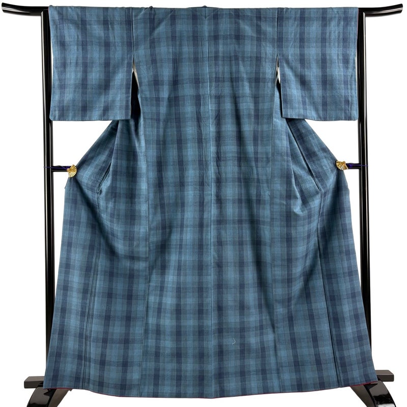 【結城紬】 青系 藍色 逸品 B 約160cm~約169cm 裄丈63cm-64cm (S)size 袖丈49cm 30000- 五万以上
