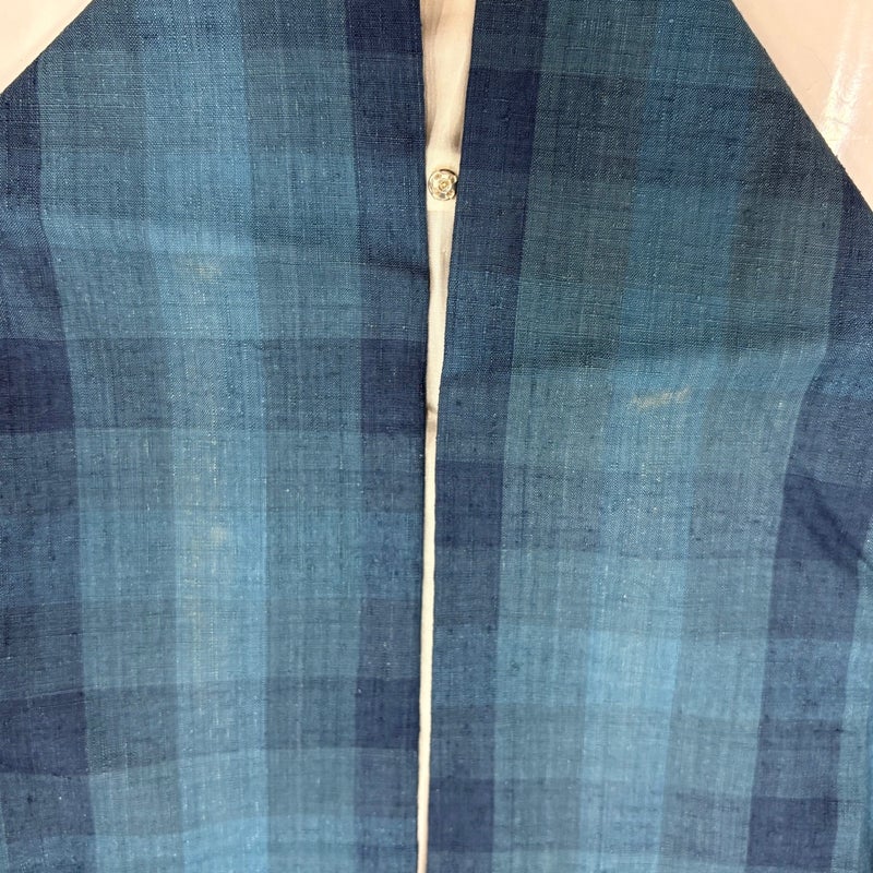 茨城県結城市と栃木県小山市周辺で生産される結城紬です。 結城独特の柔らかい温かみのある肌触りで、暖かく軽くて着心地もよいです。 身丈はこれ以上伸ばすことができません。 裄丈を+4.0cm程、現在の長さから伸ばせます。 表地所々に薄ヤケ、衿周りや両袖口中に汚れ、後身頃の背中付近と両胸にシワ、後身頃の背中付近と袖付け所々に縫い目のゆるみがございます。 裏地所々にシワ、裏地に黄変がございます。 リユース品としては良い状態で、まだまだご活用頂けると思われます。 ※なお、厳しく商品の状態確認を行っておりますが、記載の汚れ以外にも見落とし箇所がある可能性がある旨ご了承いただけますと幸いです。 沢山の商品の中からご覧いただき誠にありがとうございます。