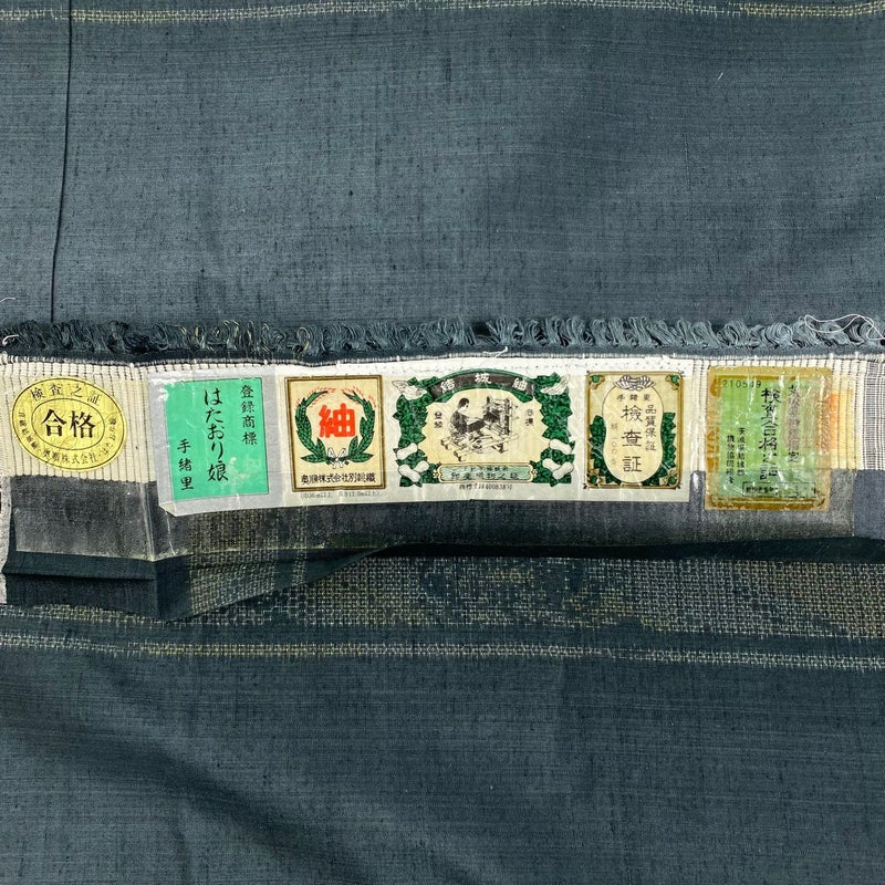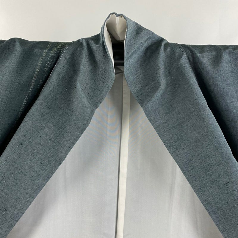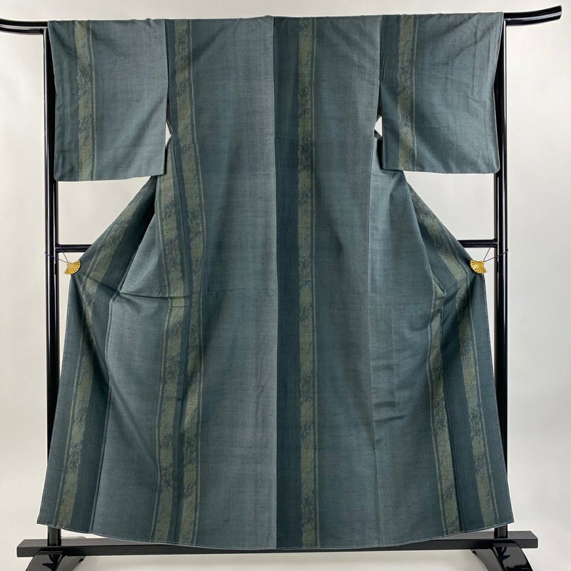 【結城紬】 灰色系 灰緑 逸品 A 約150cm~約159cm 裄丈66cm (M)size 袖丈49cm 9990-29990 美品 二万以下