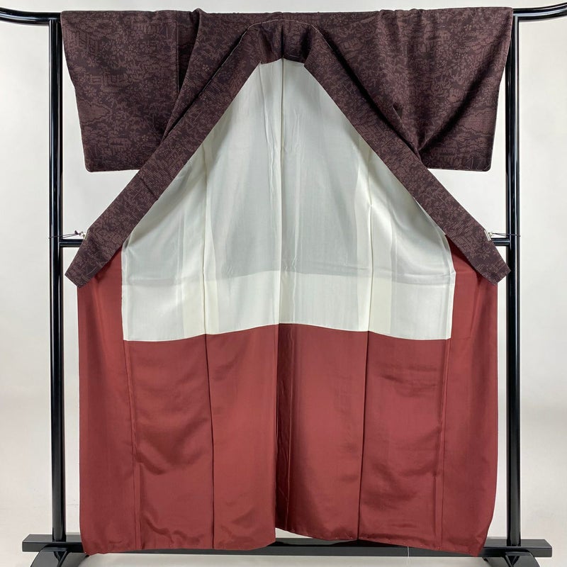 【結城紬】 茶系 茶紫 逸品 A 約150cm~約159cm 裄丈65cm (M)size 袖丈47cm 30000- 美品 五万以下
