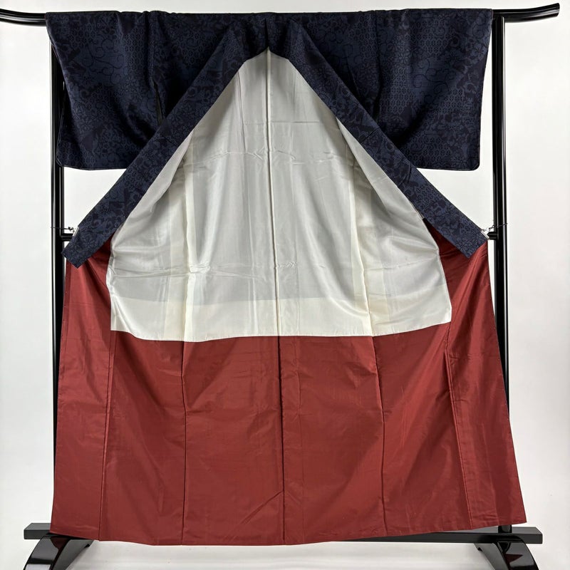 【着物ランク】逸品 【素材】正絹 【身丈】約163cm 【裄丈】約66cm 【袖丈】約48cm 【袖幅】約34.5cm 【前幅】約24cm 【後幅】約30cm 【サイズ】M 【着物仕立て】袷 【着用時期】10~5月 【状態ランク】ランクB 【着物着用シーン】気軽なパーティー、観劇、食事会、正月、気軽なお茶会、街着