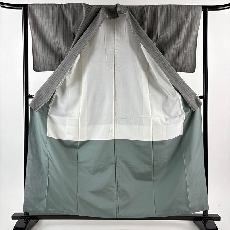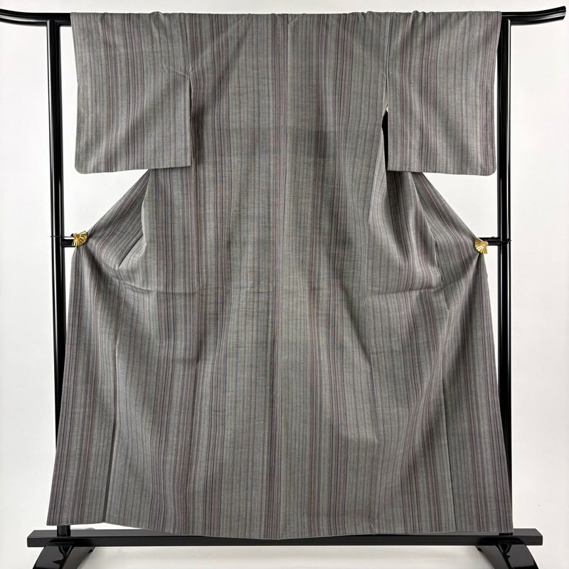 【結城紬】 灰色系 青灰色 逸品 A 約150cm~約159cm 裄丈62cm以下 (S)size 袖丈49cm 30000- 美品 五万以上