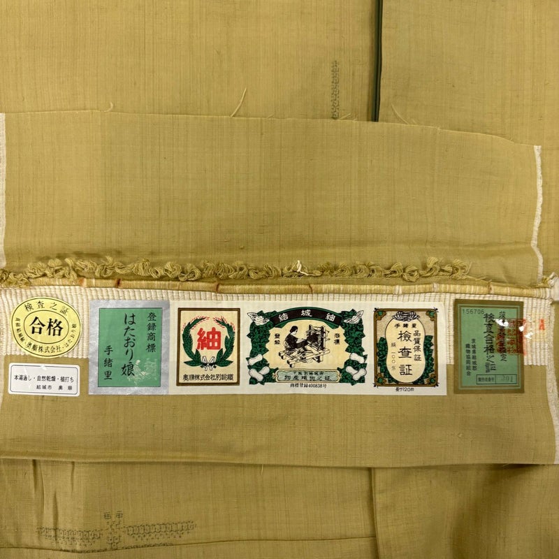 【結城紬】 緑系 抹茶色 逸品 B 約160cm~約169cm 裄丈63cm-64cm (M)size 袖丈48cm 30000- 五万以下
