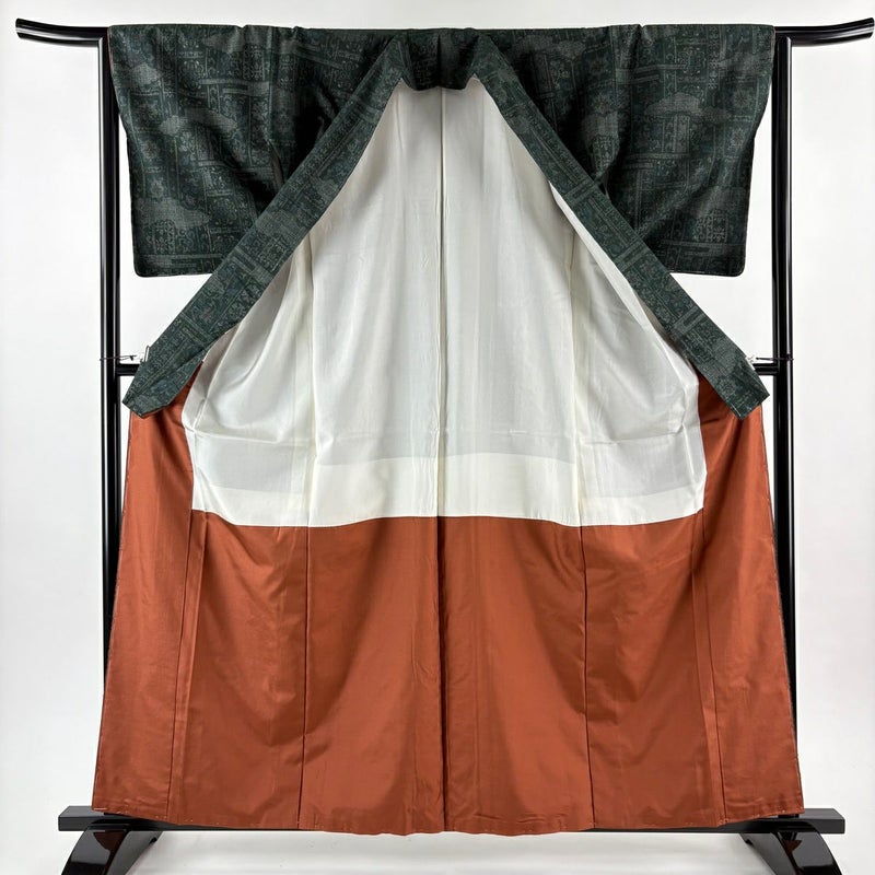 【着物ランク】逸品 【素材】正絹 【身丈】約161.5cm 【裄丈】約64cm 【袖丈】約48.5cm 【袖幅】約32.5cm 【前幅】約25.5cm 【後幅】約30.5cm 【サイズ】M 【着物仕立て】袷 【着用時期】10~5月 【状態ランク】ランクA 【着物着用シーン】気軽なパーティー、観劇、食事会、正月、気軽なお茶会、街着
