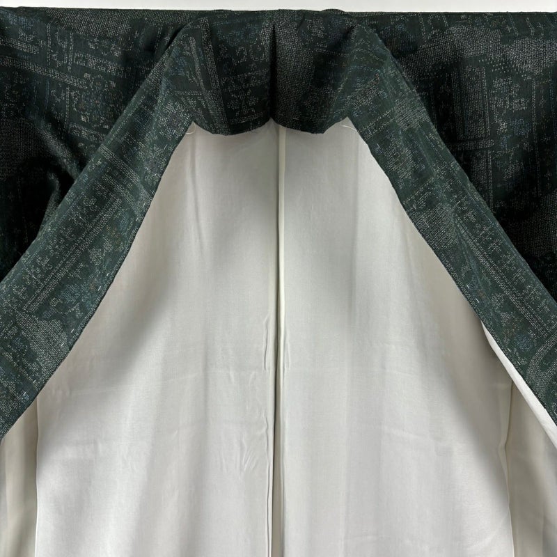 【結城紬】 緑系 緑 逸品 A 約160cm~約169cm 裄丈63cm-64cm (M)size 袖丈48cm 30000- 美品 五万以上