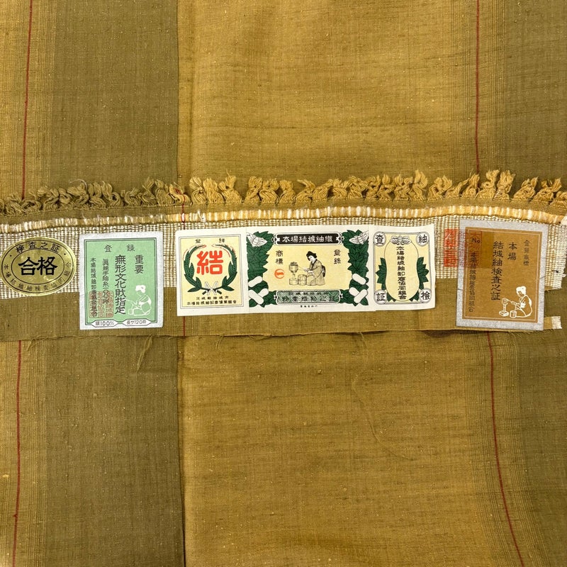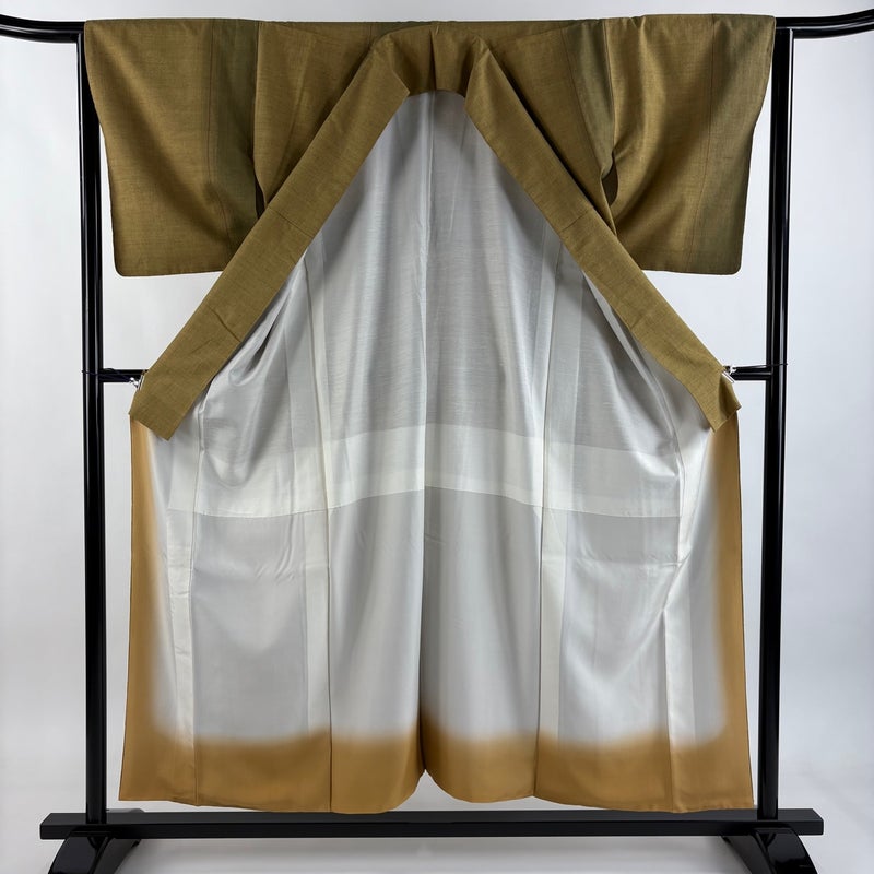 【結城紬】 黄色系 黄土色 逸品 A 約150cm~約159cm 裄丈63cm-64cm (M)size 袖丈49cm 30000- 美品 五万以上
