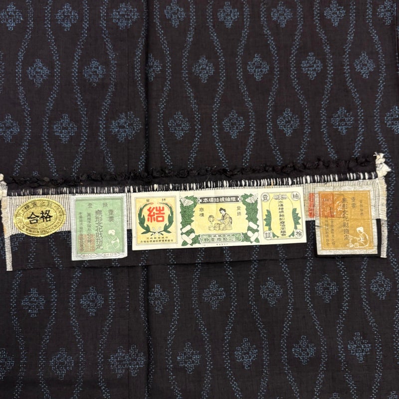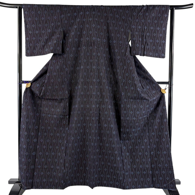 【結城紬】 青系 濃紺 逸品 A 約160cm~約169cm 裄丈62cm以下 (S)size 袖丈47cm 30000- 美品 五万以上