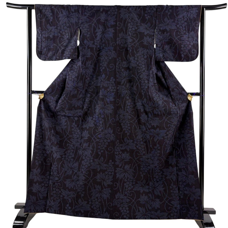 【結城紬】 青系 濃紺 逸品 A 約160cm~約169cm 裄丈62cm以下 (S)size 袖丈46cm以下 30000- 美品 五万以上
