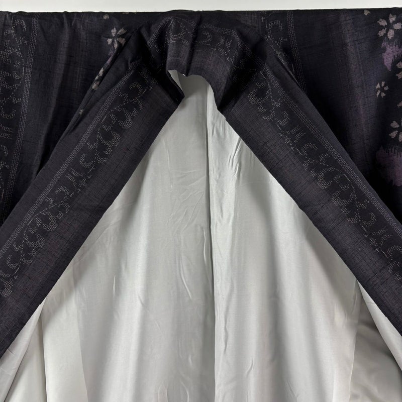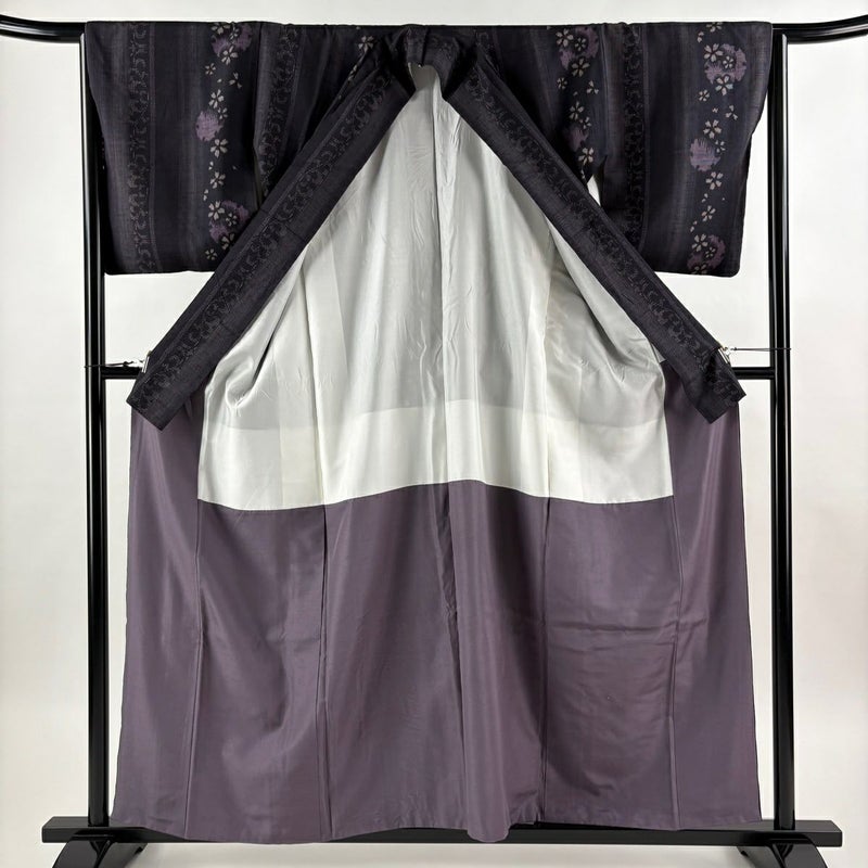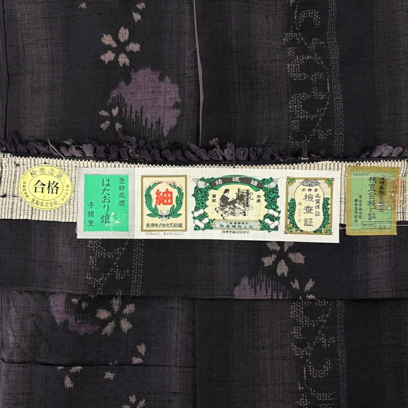 【結城紬】 黒系 墨色 逸品 A 約150cm~約159cm 裄丈63cm-64cm (M)size 袖丈48cm 30000- 美品 五万以下